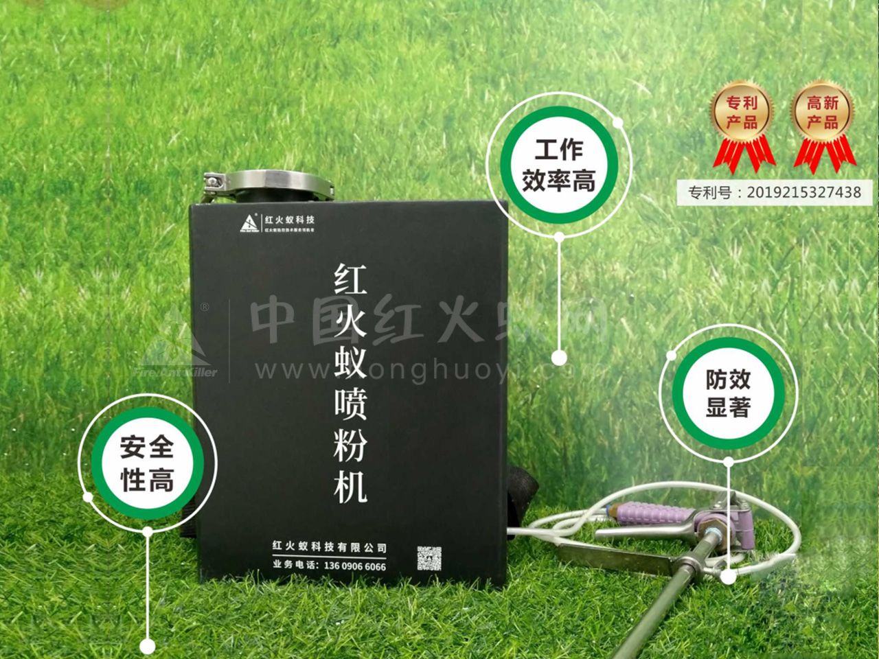 红火蚁喷粉机(也叫红火蚁速灭器),是根据红火蚁蚁巢特征、火舒净粉剂杀蚁机理特别设计,通过高压喷粉的方式直接将粉剂输送到蚁巢内部,既方便又快捷。