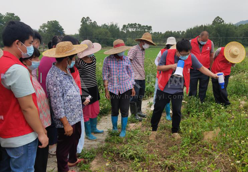 工作人员向村民、志愿者现场讲解施药方法