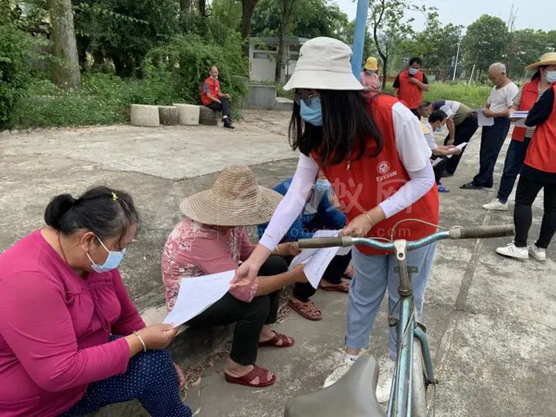 志愿者向村民派发红火蚁防控倡议书