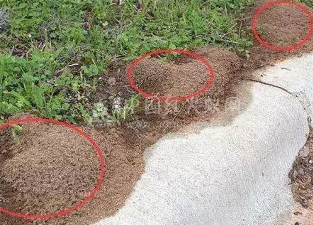 红火蚁的蚁穴跟其他蚂蚁的不一样,是一个个蚁丘,看上去就像是小土堆。这些蚁丘高度约为10-30厘米,直径在30-50米之间。