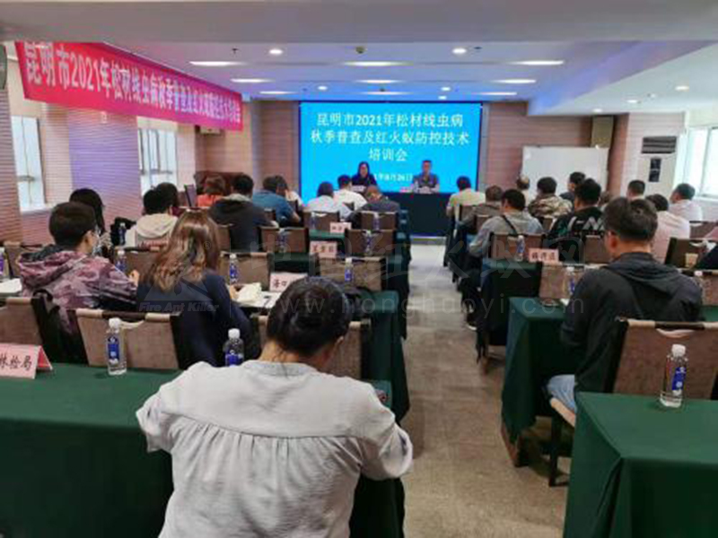 为切实做好昆明市松材线虫病、红火蚁等林业有害生物防控工作,进一步加大防控工作力度,全面提升全市林检及防控人员业务水平,8月26日,昆明市林检局组织各县(市)区、开发(度假)园区林检部门人员及海口林场、西山林场负责森林病虫害防治的人员共计40余人,举办了2021年全市松材线虫病秋季普查及红火蚁防控技术培训班。