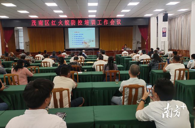 为提高农作物外来有害生物的监测与防控能力,有效控制全区红火蚁等外来有害生物的发生危害和扩散,10月27日上午,茂南区举办全区红火蚁防控培训会,区农业农村局、各镇(城南街道)分管领导、各镇(城南街道)村(居)委书记及群众代表等近100人参加了培训。