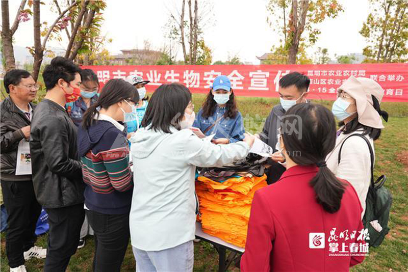 “红火蚁是有毒的,被咬到要及时消毒”“要注意识别野生水生生物,做好保护工作”……4月15日,昆明市农业农村局联合西山区农业农村局共同举办了2022年生物安全主题宣传教育活动,通过现场宣传、引导、讲解的形式,进一步提高全社会对生物安全工作的认识度和参与度,提升农村区域生物安全防护、治理、共建整体意识。