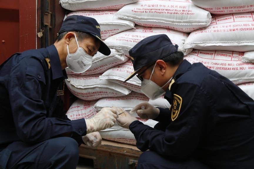 近日,黄埔海关所属老港海关关员对集装箱装载的一批进口大米和一批进口小麦进行查验时,连续在箱体内壁及货物中截获活体蚂蚁,经鉴定均为检疫性有害生物红火蚁。
