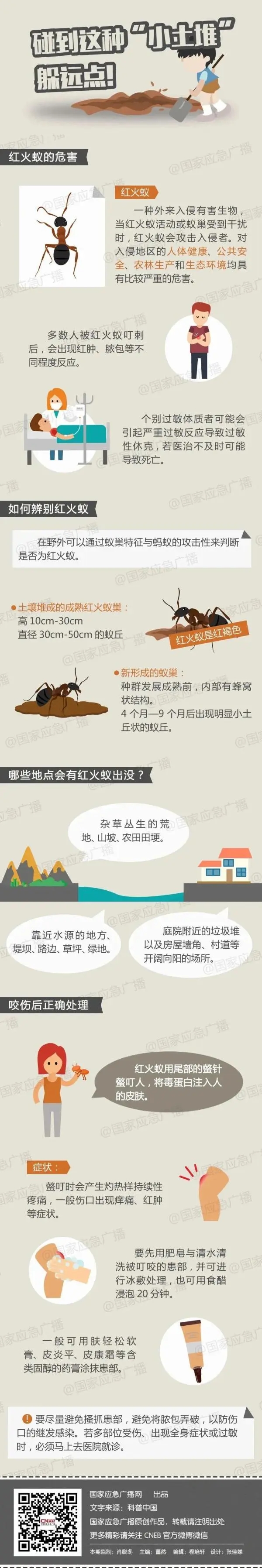 医生提醒,去野外玩耍,突然被红火蚁叮到,要及时用清水清洗伤口,并涂抹一点糖皮质激素类的软膏,这样会减轻过敏反应。