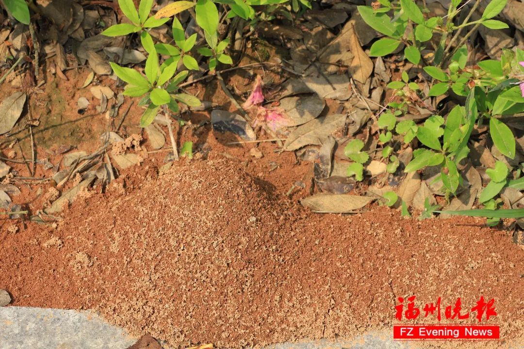蚁巢出口处有一小堆红土