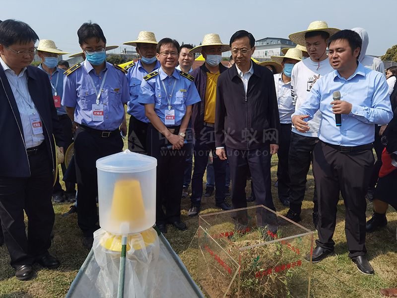 启动仪式上展示了一批红火蚁监测防控技术产品和成果,开展了红火蚁监测调查技术演示,无人机防治、人工施药防治演示以及红火蚁叮咬伤人救护演示,并对农作物种苗繁育基地的日常检疫工作进行了巡检。启动仪式后,广东省重大病虫疫情防控指挥部随即召开由18个部门、21个地级市参加的防控现场会,拉开红火蚁春季防控序幕。
