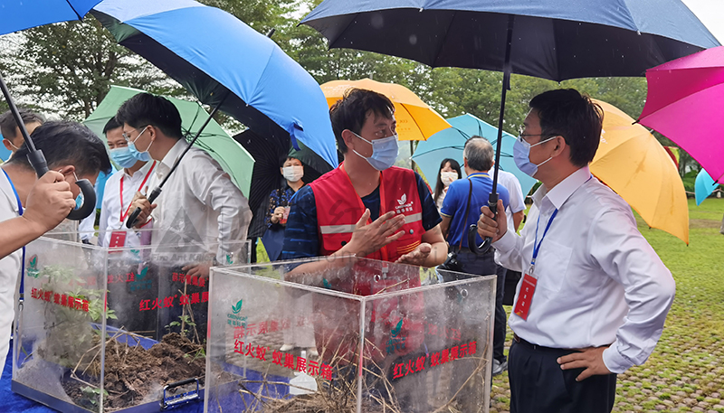 会议期间,与会人员参观了红火蚁防控现场,观看了全省红火蚁防控主题片。省农作物重大病虫疫情防控指挥部通报了全省红火蚁防控工作情况,深圳、佛山、博罗、英德等市、县代表及红火蚁防控专家作交流发言。