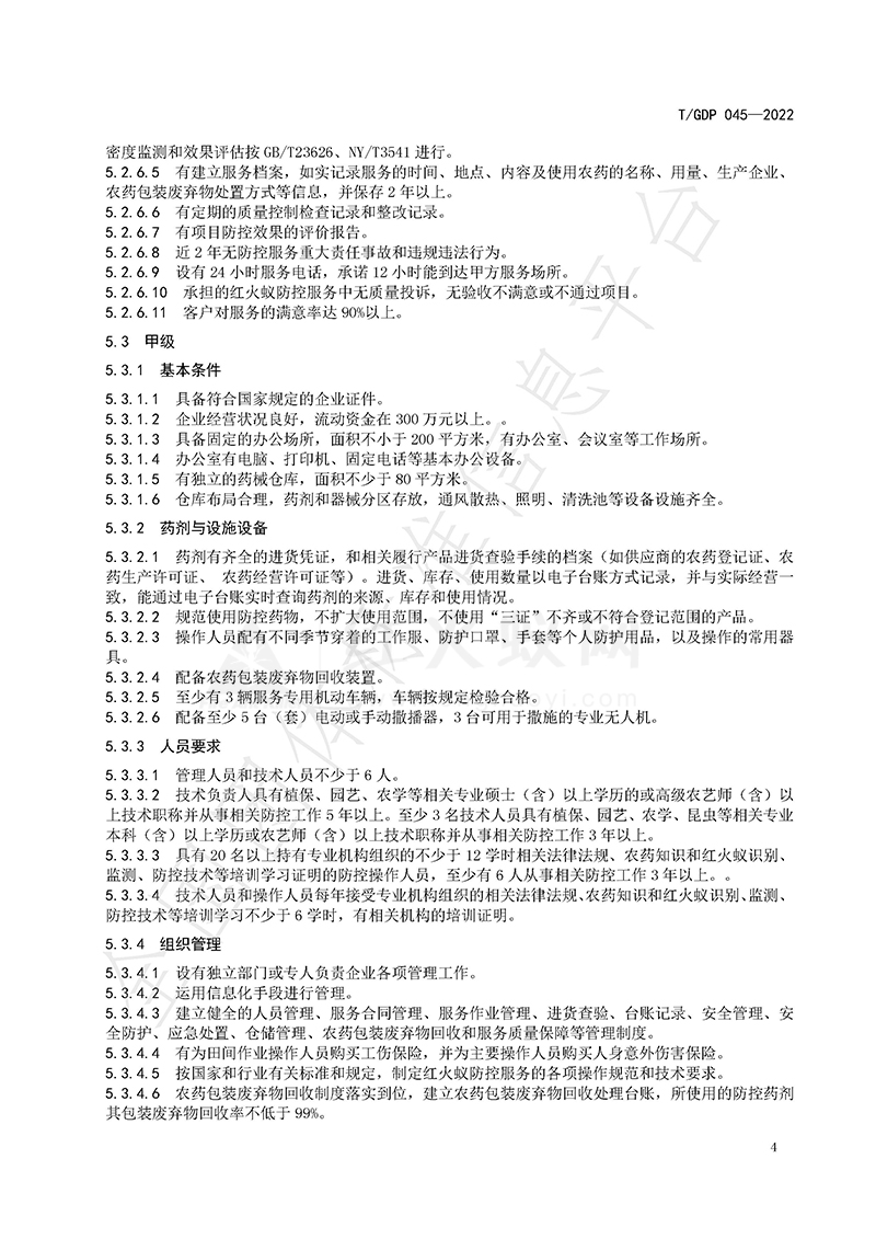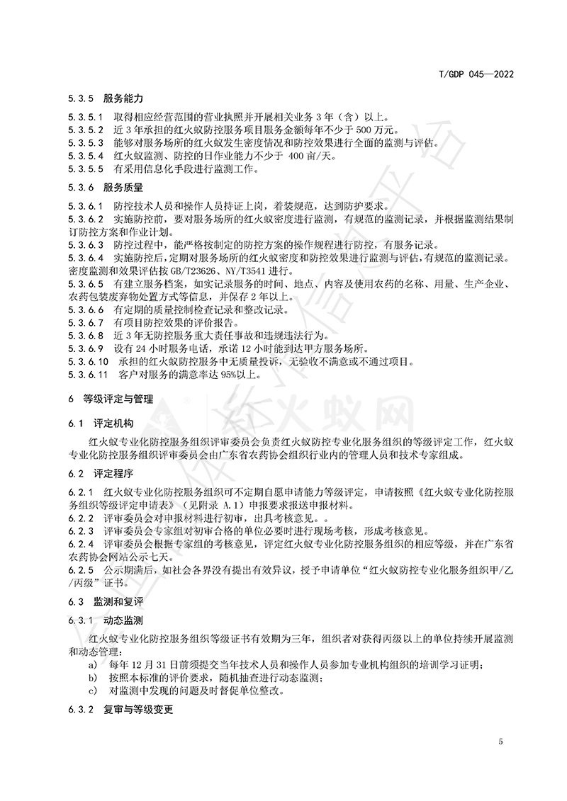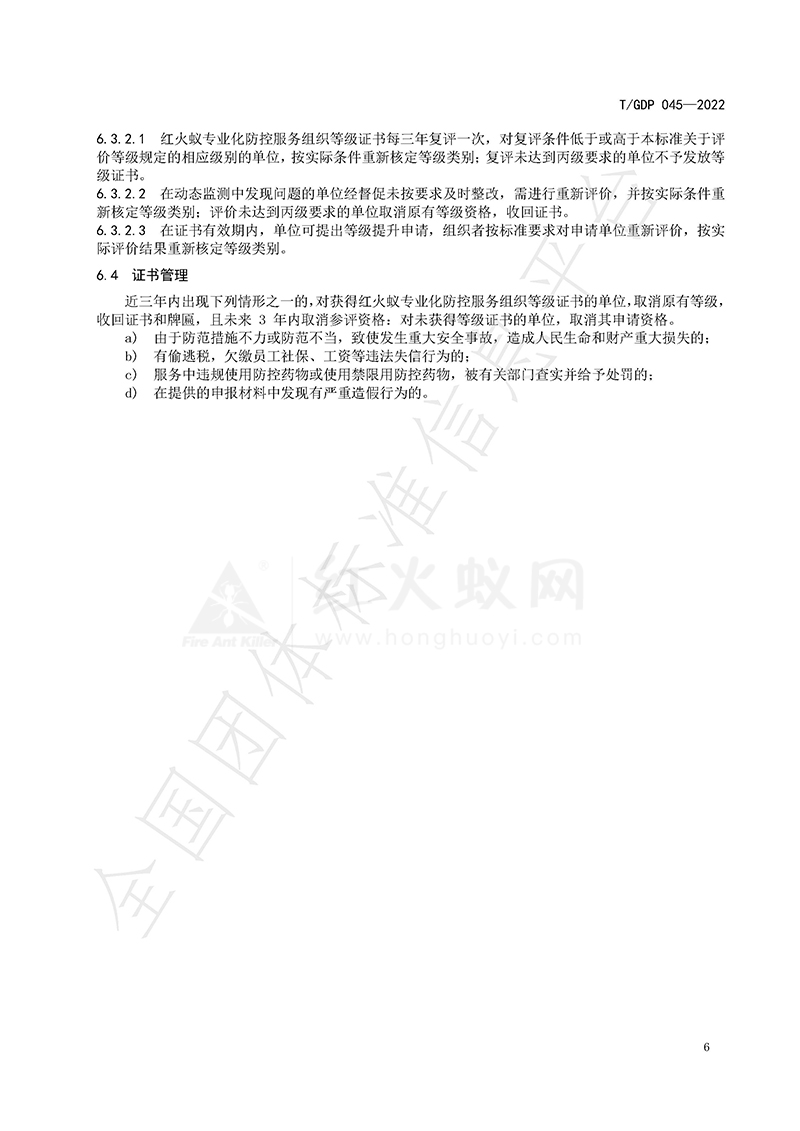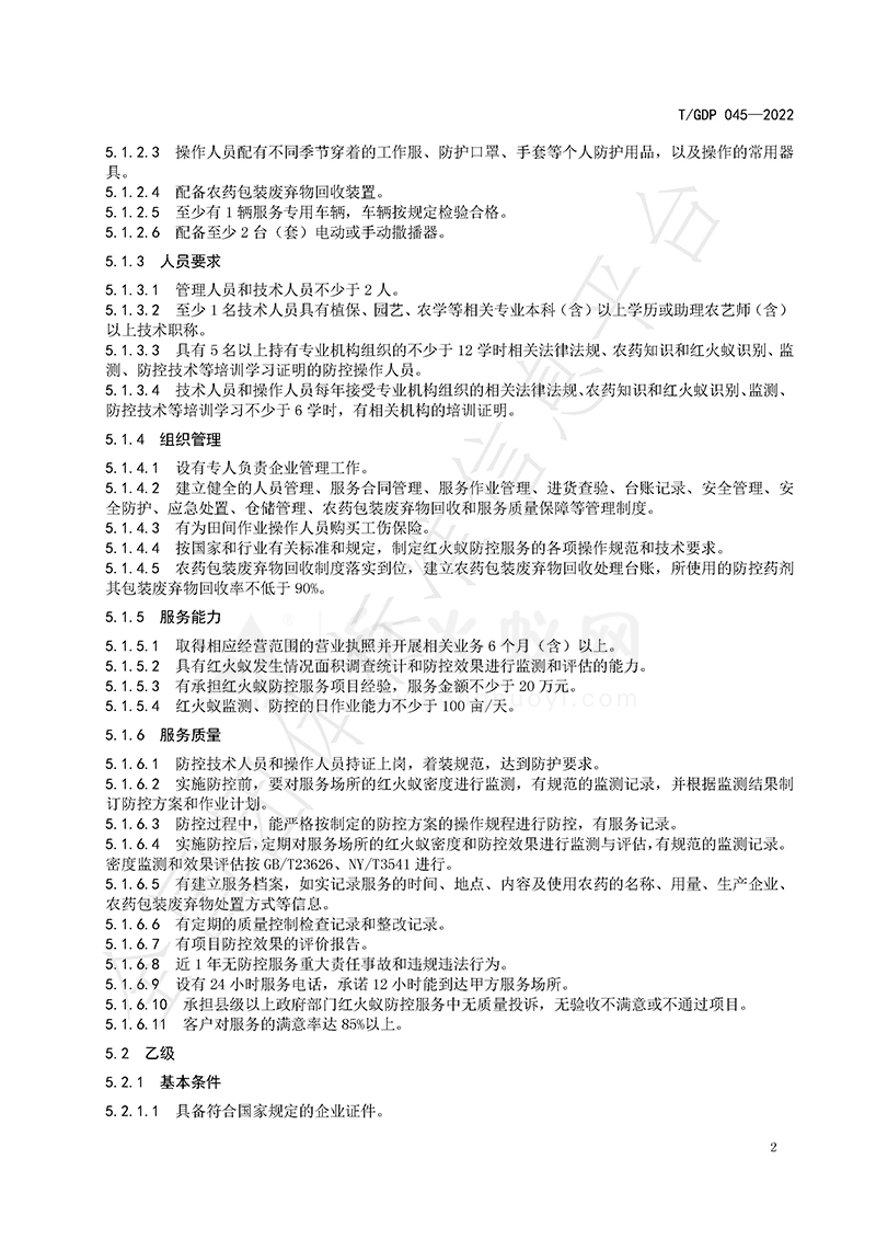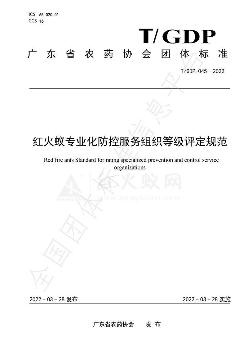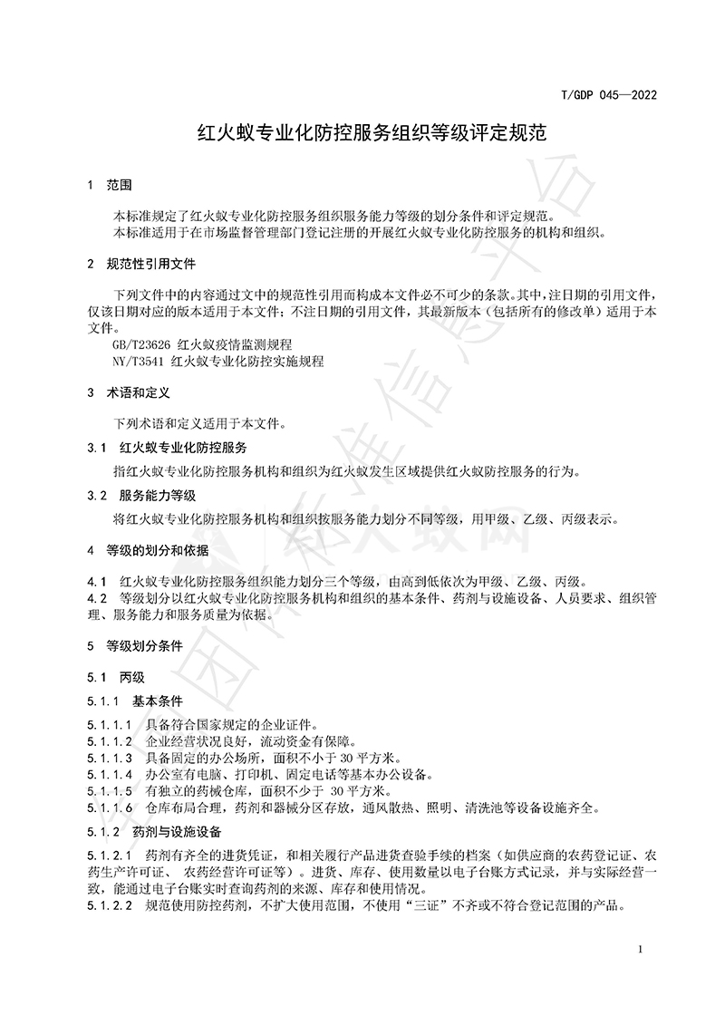 红火蚁专业化防控服务组织等级评定规范