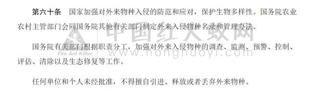 《中华人民共和国生物安全法》于2021年4月15日起施行,防范外来物种入侵与保护生物多样性是其中重要一环。