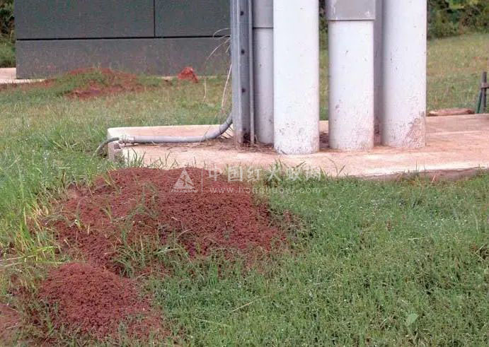 4.破坏公共设施。红火蚁喜欢在户外电子设备、公园草坪、农田沟渠和堤坝中筑巢,对电子通讯设备、水电工程、城市公园和建筑等公共设施造成严重破坏,危害公共安全。