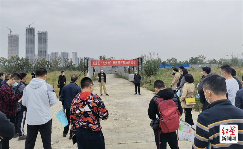 10月13日报道 为进一步做好双流区红火蚁防控工作,13日,双流区公园城市绿化服务中心联合区农业农村局,在怡心街道召开双流区红火蚁阻截防控现场培训会。