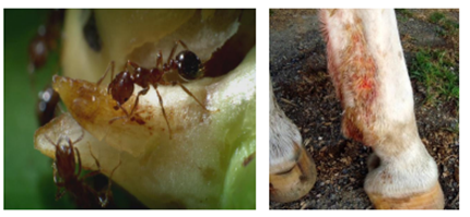 在野外发现红火蚁和小火蚁的踪迹以及进行调查监测时要注意预防蛰咬。