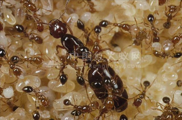 捕杀红火蚁要广泛施毒:此方法适用于密度大、分布广的蚁巢;一般用诱捕法捕杀工蚁,但诱捕区较小。所有病例均为喷雾。根据毒饵用量和蚁巢、工蚁密度情况,确定毒饵用量;整体性和局部性:在重病区,当蚁巢密度较大且分布广泛时,可采用单一蚁群防治和局部防治相结合的方法,适当增加毒饵用量。