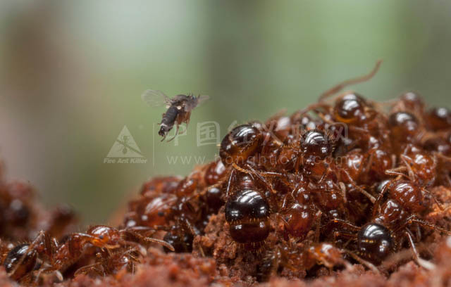 咱们可以用舒觉耳剂这一类在市面上常用的消杀药物抛洒在蚁巢周围,利用红火蚁的公蚁来使整个红火蚁蚁群中毒。除了抛洒药剂之外,咱们还可以直接使用兑水的阿维菌素,将它直接灌入到红火蚁的巢穴当中。但是这两个方法,目前都没有实现根除红火蚁这个隐患的效果,很多人发现由于红火蚁强大的繁殖能力,虽然说在短时间内会见不到成群结队的红火蚁,但是在来年红火蚁还会发展到一个令人胆寒的规模,对人类的生产活动造成威胁。