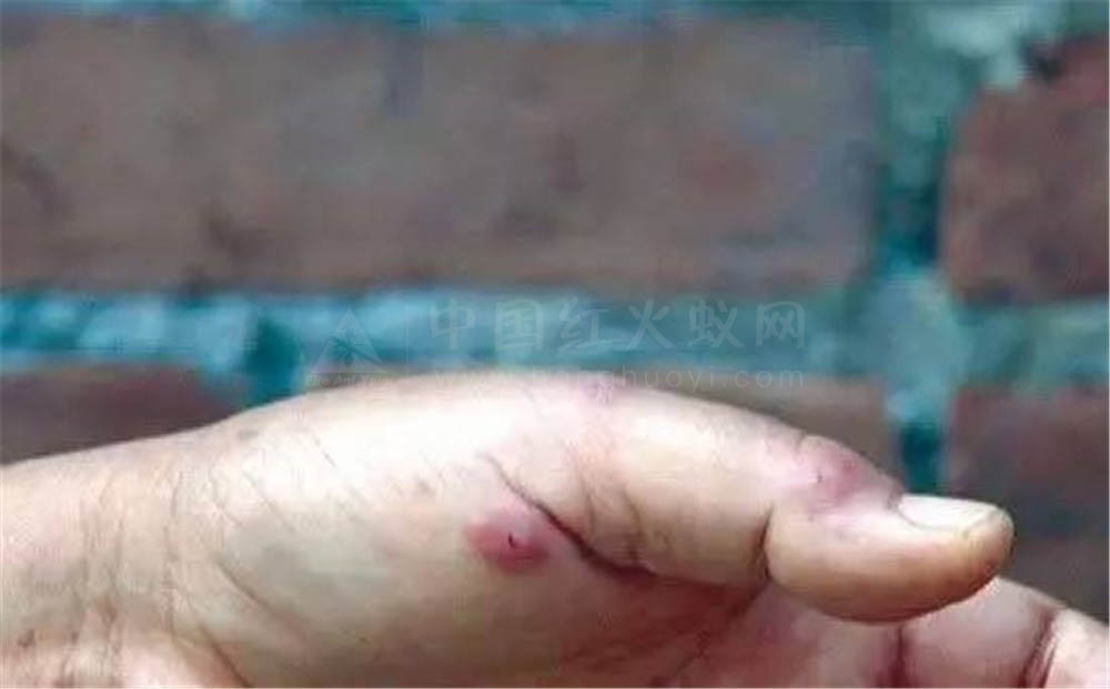 红火蚁叮咬时会用大颚紧紧咬住皮肤,同时用尾部的针多次刺入皮肤,导致皮肤出现连续的刺痕。