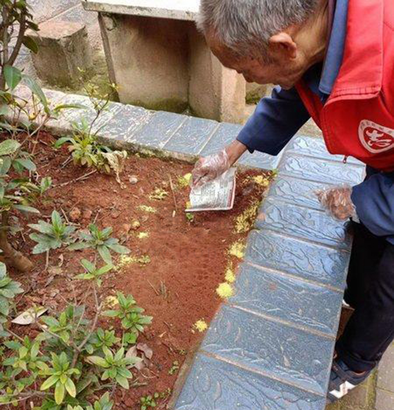 强化防控措施。督促各居民小组、商住小区认真开展红火蚁发生面积排查工作,购买红火蚁防控药剂分发到各居民小组,统一组织开展灭杀红火蚁行动。