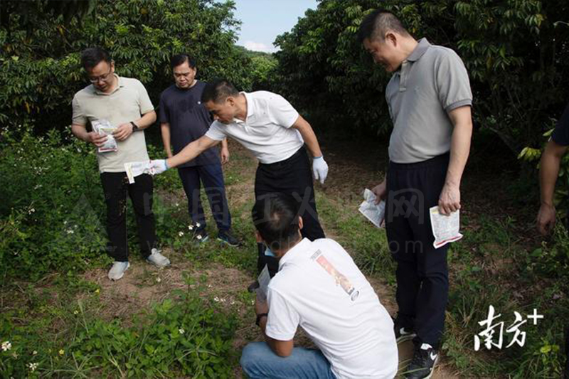 “在田间劳作时要充分做好防护措施,不要徒手破坏蚁巢,以防被红火蚁叮咬。”“施药时应保持地面干燥。”……在铁铺镇溪美寨村,专家给大家讲解了防治红火蚁的操作步骤及注意事项,引导大家观察蚁巢,了解红火蚁的生活习性,并现场示范施药。