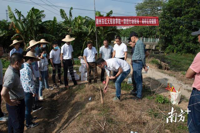 在湘桥区各个涉农镇街,整治队伍带领村民到场参观学习红火蚁防治知识,将环境整治工作与红火蚁防治工作有机结合。