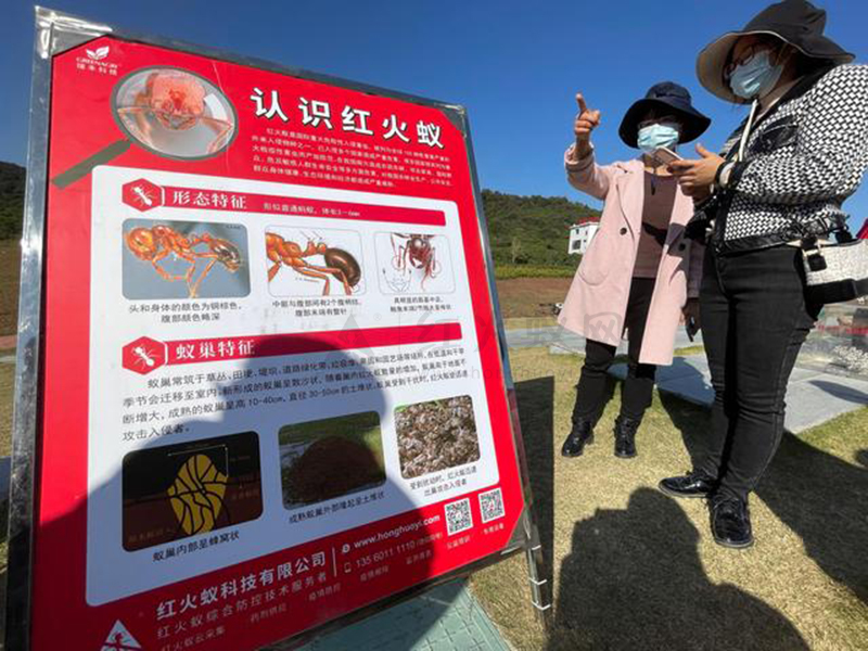 此外,广州构建了“市、区、镇(街)”三级科技指导服务体系,加强技术指导服务;市成立红火蚁防控技术指导专家组,分组包片到区开展指导。专家团队深入田间地头开展技术指导服务,指导培训各种苗、花卉企业做好检疫防控,举办红火蚁防控培训687场,培训人员累计12655人次;派发《植物检疫法规标准汇编》《红火蚁的危害与防控》等红火蚁宣传资料,群众防范红火蚁意识和防控水平有较大提升。同时,建立全覆盖专业药剂零售服务网,目前广州红火蚁专业药剂专门销售点达109个,覆盖全市各镇(街),为群众提供科学选药用药服务。