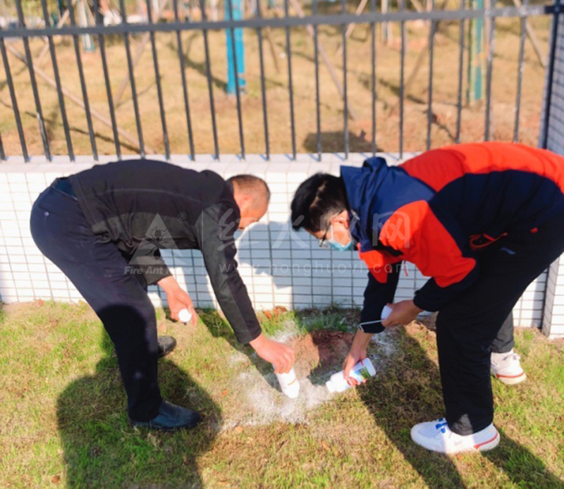 10月下旬以来,浏阳市农发中心植物检疫员在长沙市惠科光电有限公司园区、浏永公路(永安段)绿化草坪等区域发现红火蚁蚁巢,在现场调查取样确定为红火蚁疫情后立即制定了处置方案,指导长沙惠科光电有限公司和永安镇农业农村办对红火蚁进行毒饵诱杀和粉剂灭巢处理。