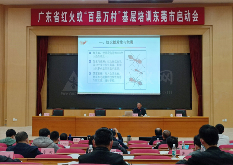 为进一步贯彻落实省、市关于做好红火蚁防控工作的部署要求,全面提升广大基层干部、群众红火蚁防控水平,有效打通科学防控“最后一公里”,保障农业生产、生态环境安全和人民群众身体健康,根据省农业农村厅《关于做好全省红火蚁“百县万村”基层培训工作的通知》要求,结合当前新冠肺炎疫情防控相关工作要求,1月17日我市以电视电话会议形式举行广东省红火蚁“百县万村”基层培训东莞市启动会。