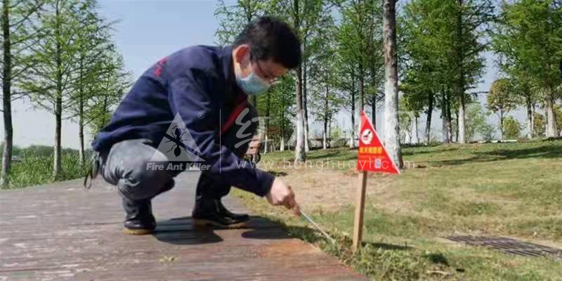 为有效遏制红火蚁疫情蔓延,武汉市经开区三角湖公园多措并举,抓好公园、绿地、绿化带的红火蚁防控工作。