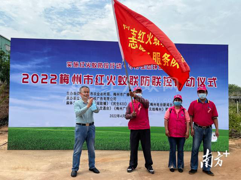 启动仪式上还举行了“梅州市红火蚁联防联控志愿者服务队”授旗仪式。接下来,市农业农村局将与志愿者服务队一起行动,积极开展有关红火蚁的危害及防控措施的科普行动。