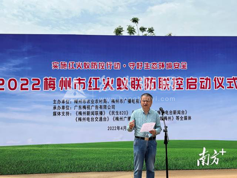 4月22日上午,2022年梅州市红火蚁联防联控启动仪式在市农林科学院湾下基地举行。