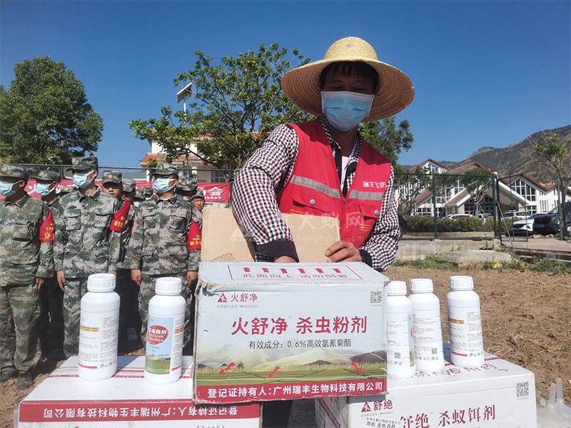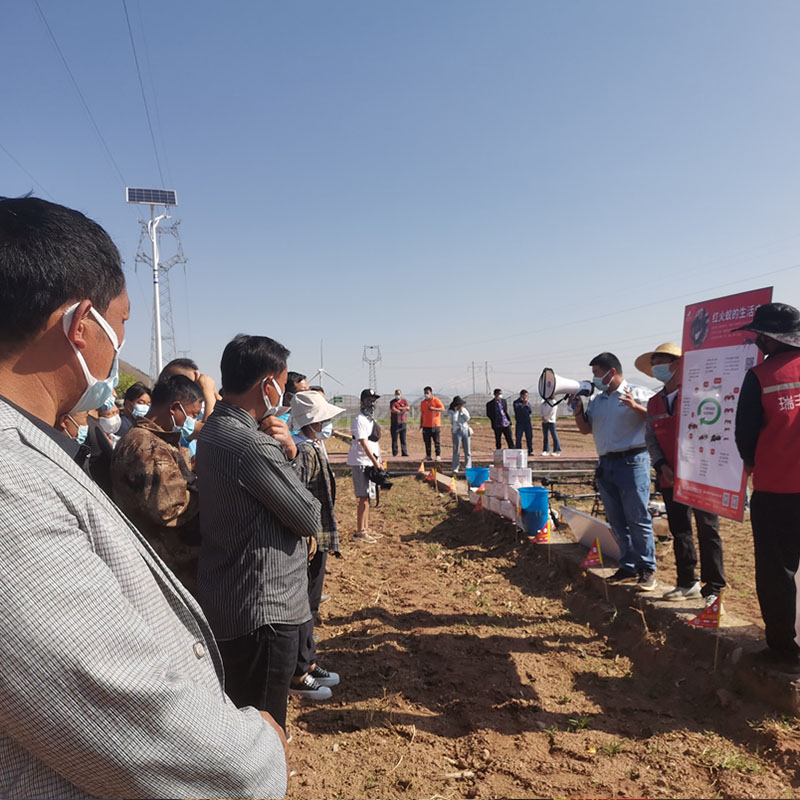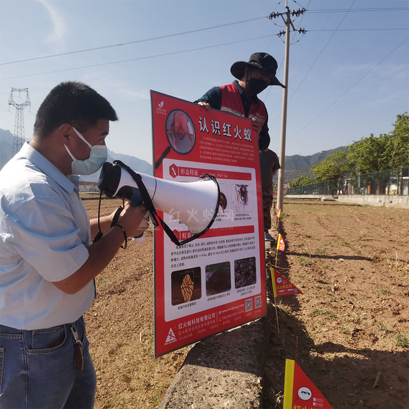 ”此外,针对无人机不能防控的地带,专业植保员和技术人员还现场为园区农户、乡镇植保员演示了不同药剂的防控技术,带领大家充分摸排红火蚁数量及活动区域,指导大家用施药、投放诱饵诱杀等方式,同步进行红火蚁防治。