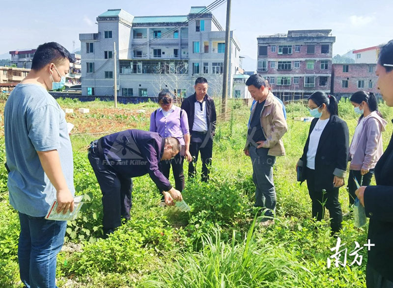 工作人员现场示范红火蚁用药。通讯员供图