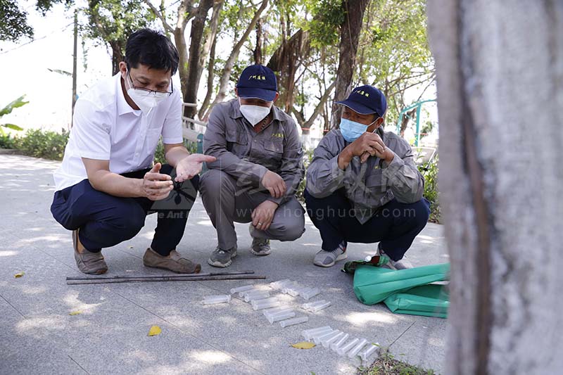 南沙区农业农村局下发300箱红火蚁药,榄核镇根据各村需求及结合实际情况,将其中230箱下发至各村及农场。同时,聘请专业红火蚁防治公司,为红火蚁防治提供技术支援。