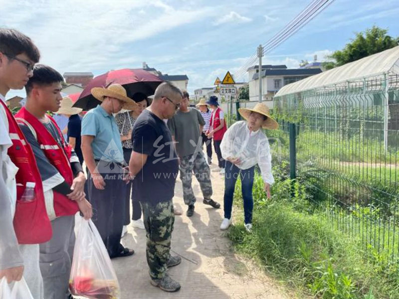 在现场会上,红火蚁专业防控团队技术人员结合红火蚁辨认、活动轨迹等,从发生范围、发生特点、危害程度、注意事项,就科学监测、点面结合、诱杀为主的方法进行了详细讲解,并进行了现场示范培训。