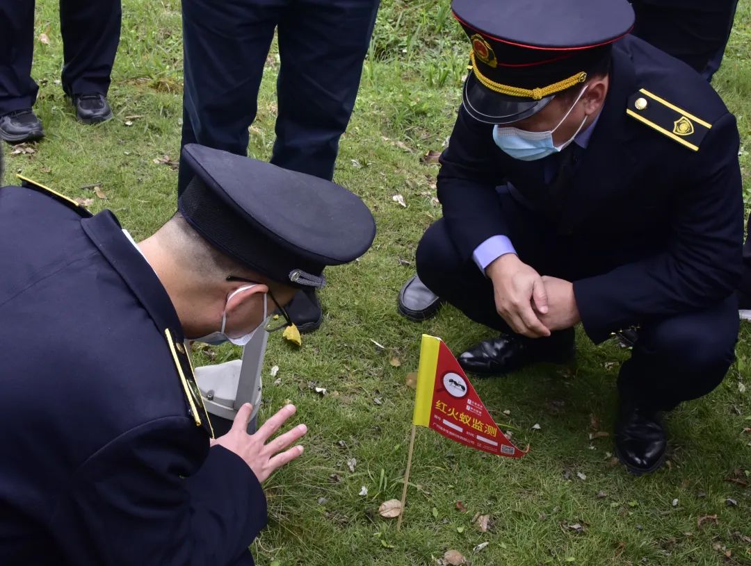 活动现场,参会人员观看了红火蚁宣传教育视频,并现场观摩了红火蚁疫情扑灭演练,演练活动的内容包括疑似疫情发现、现场采样、拉网普查、室内鉴定、疫情报告与启动应急预案、现场应急响应、疫情扑灭、防效评估、疫情解除等环节。