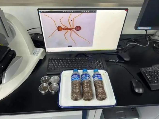 近日,海关对入境旅客进行监管时,在一旅客行李物品中发现6个装有白酒的塑料瓶,瓶中浸泡大量蚂蚁。经鉴定,塑料瓶内的蚂蚁竟为黄猄蚁,此事经报道后,迅速登上网络热搜,引起网友广泛讨论。