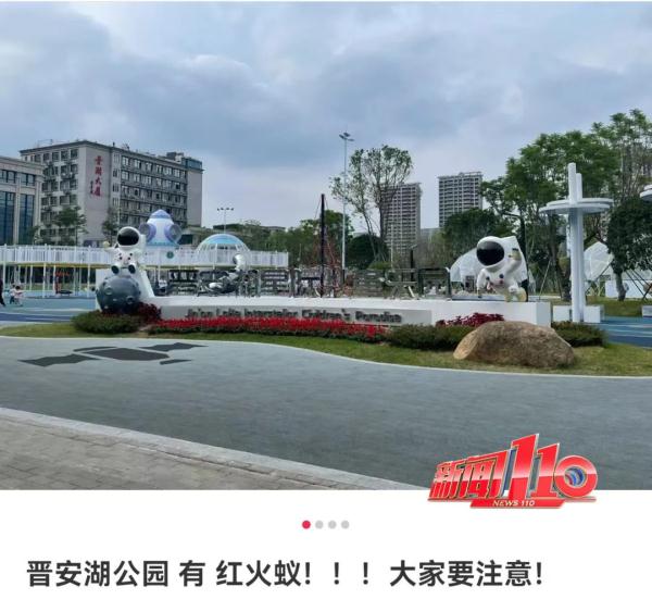 最近,有网友表示旗山湖公园、晋安湖公园等多地出现红火蚁的踪迹。