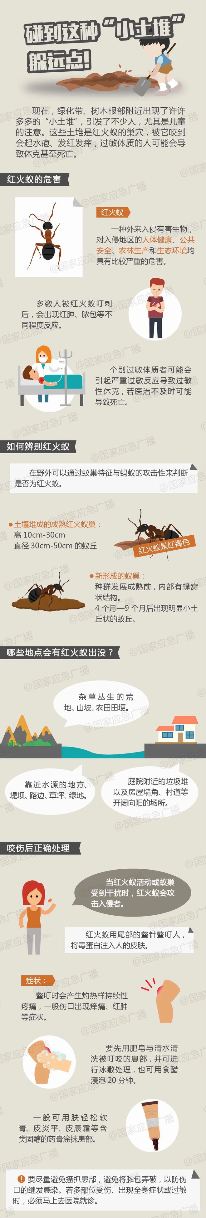 深圳一男子被一群红火蚁咬到了手。第二天除了出现高烧和红疹的症状外,还有肝、肾、凝血等“多器官功能衰竭”,医院立即将他转送入ICU抢救。经过3天抢救才脱离生命危险。