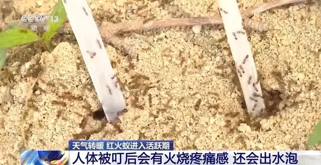 中国农业科学院植物保护研究所研究员 张蕾:如果不小心被红火蚁叮咬后,一定不要掉以轻心,如果在有条件的情况下,要用肥皂水或清水快速清洗伤口,可以涂含类固醇等一些舒缓过敏的药剂,让你的疼痛感和痒感不是那么强,但是人一旦出现发烧、呼吸困难的情况,一定要及时去医院就诊。