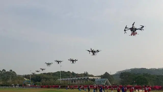 无人机正在施撒饵剂。受访者供图