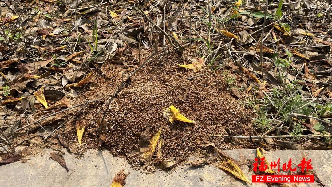 蚁巢出口处有一小堆红土