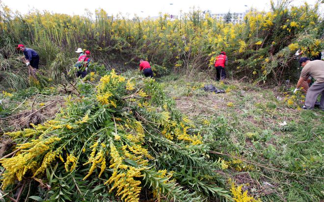 “加拿大一枝黄花”是我国上海等地在20世纪30年代从北美引进的观赏植物,后逸生野外,具有极强的繁殖和快速占有空间的能力,压制本地植物生长,破坏入侵地的植被生态平衡。