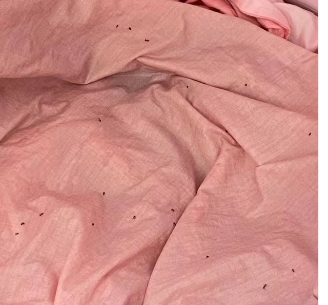 宋女士回忆,9月19日晚她去楼顶收被子,由于光线昏暗有被子掉在地上,抖了抖灰尘后抱着被子一起下楼。在下楼的过程中,宋女士感觉到手臂一阵刺痛,随后整条手臂开始发痒,到家后才发现被子上爬着大量蚂蚁。
