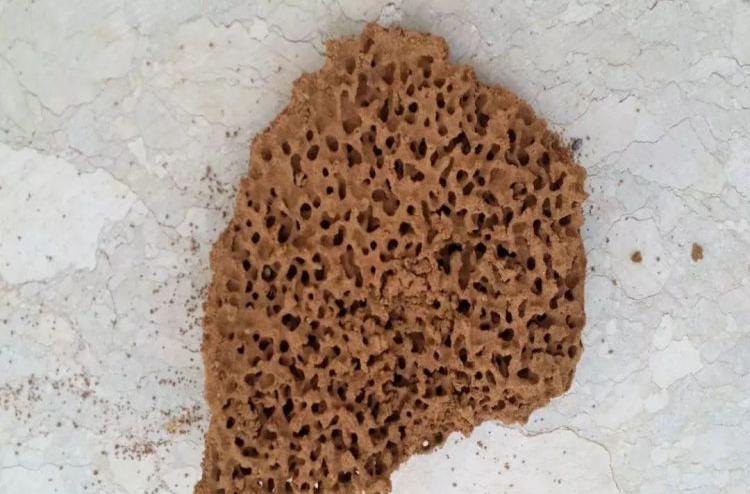 蚁巢出口处一般会有泥沙堆积,在地面上形成肉眼可见的明显“蚁丘”。蚁丘平均直径在20cm以上,高度10~30cm,较一般蚂蚁蚁丘明显高大,蚁丘内部中心部分呈蜂巢状多孔道结构。