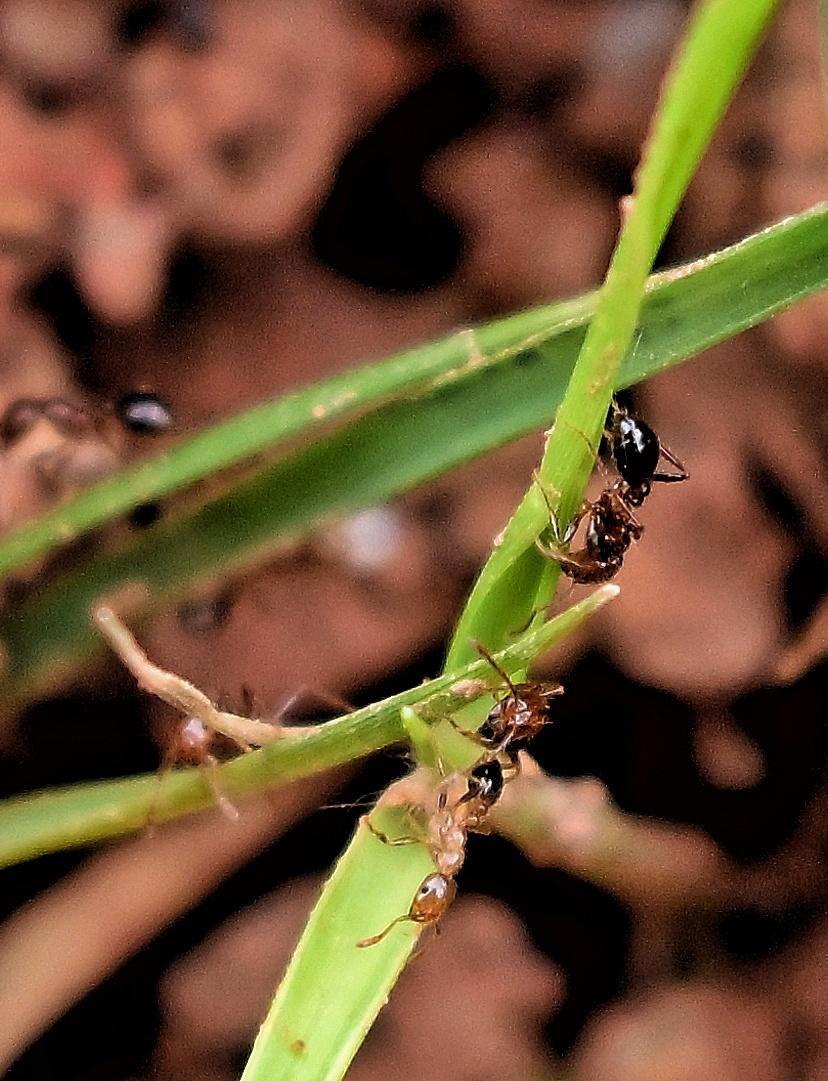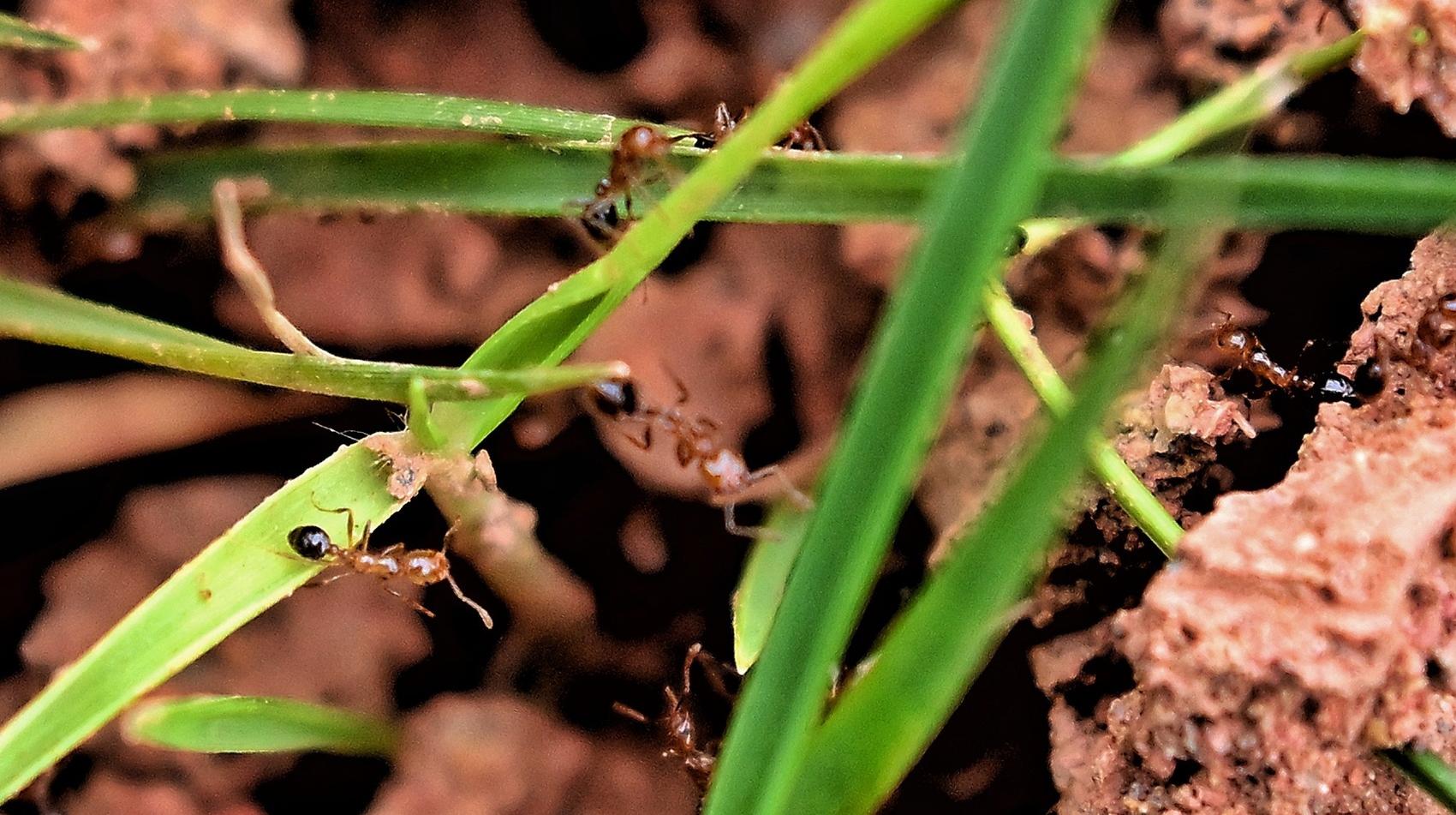 在草枝上攀爬的红火蚁。
