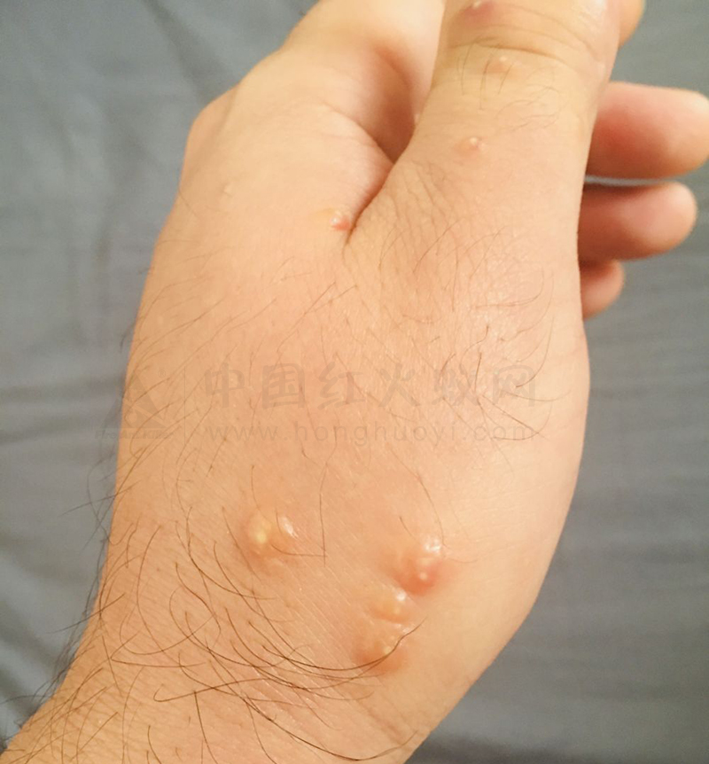 被红火蚁叮咬的手部