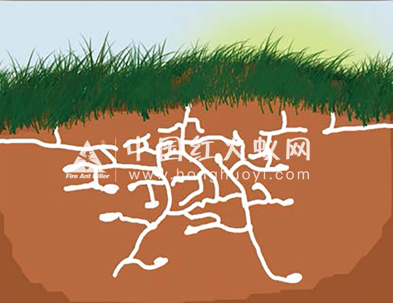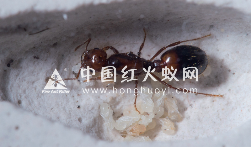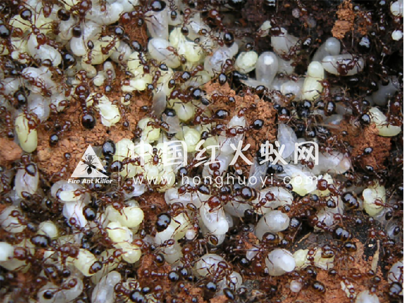 在我国,红火蚁蚁巢主要为多蚁后型蚁巢。