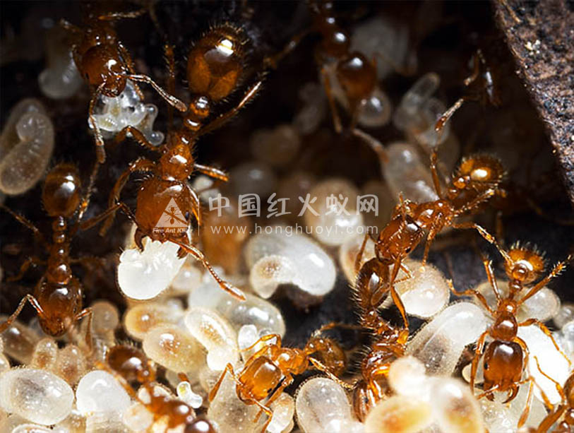 红火蚁繁殖速度十分惊人,增加了灭杀的难度。在红火蚁群体中,蚁后是专门负责产卵、繁衍后代的关键角色,有些红火蚁巢中会有数只甚至数十只蚁后,每个蚁后每日可以产卵1500粒到5000粒,红火蚁数量短时间就可以大量增加,导致蚁群规模极其庞大,有些蚁巢可能有多达十几万甚至几十万只红火蚁。