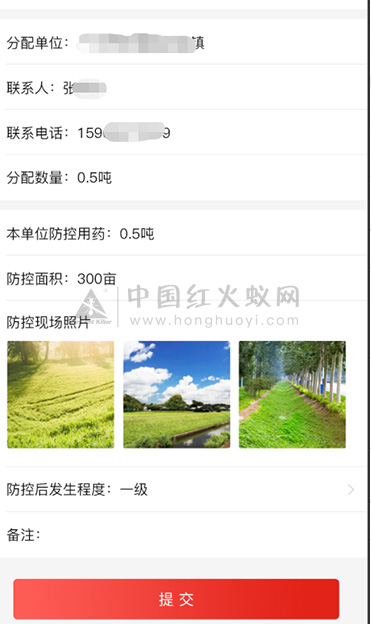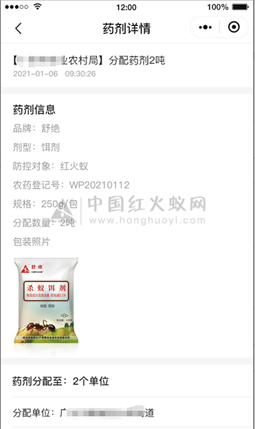 可用于主管单位对红火蚁药剂发放与使用的监督,实现防控药剂从发放派送到使用的全程追溯。